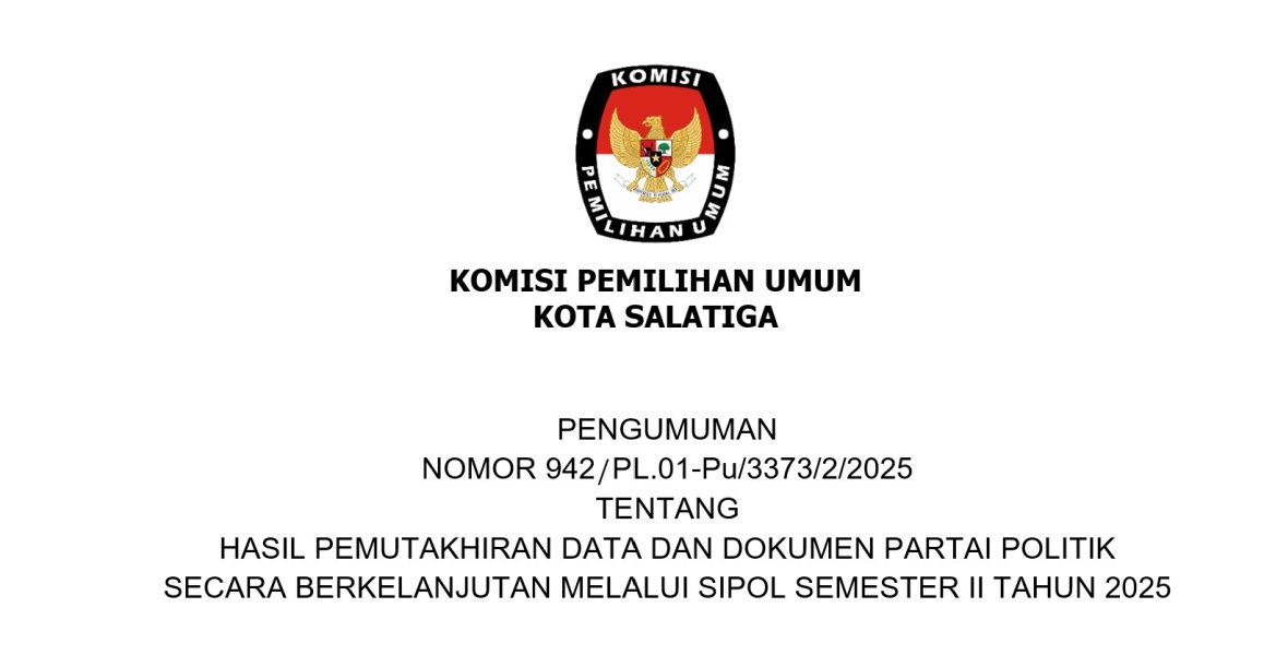 PENGUMUMAN REKAPITULASI DAFTAR PEMILIH BERKELANJUTAN KOTA SALATIGA TRIWULAN IV TAHUN 2025