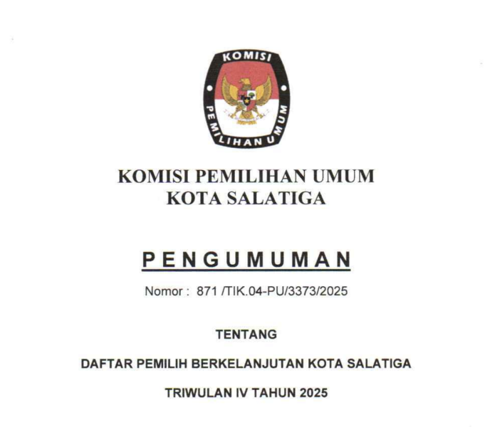Pengumuman Nomor : 606/RT.01.3-Pu/3373/2025 Tentang Lelang Barang Milik Negara Barang Persediaan Pasca Pemilihan Tahun 2024 Pada KPU Kota Salatiga