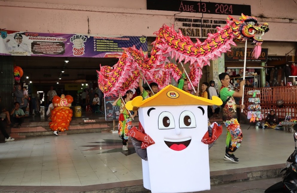 BARONGSAI MERIAHKAN SOSIALISASI KPU SALATIGA DI PASAR RAYA I DAN II