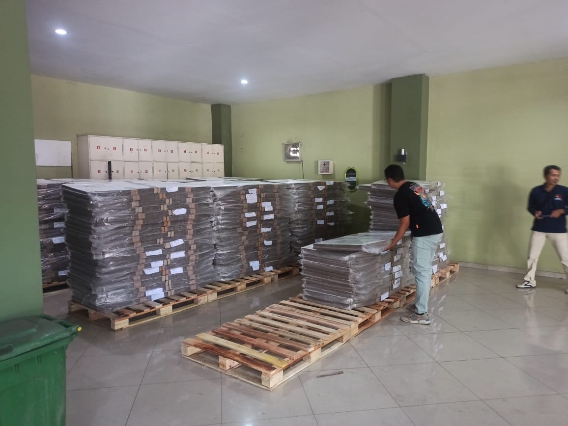 "Hari ini Jum'at tanggal 20 November 2023 telah datang logistik bilik suara sejumlah 2.608 sesuai kebutuhan KPU di 652 TPS," kata Syaemuri.