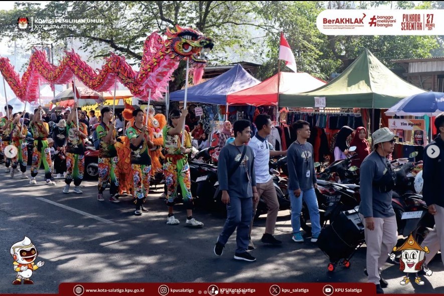 kota-salatiga.kpu.go.id – Minggu (25/8) bertempat di Pasar Tiban JB Salatiga, KPU Kota Salatiga beserta PPK dan PPS se - Kecamatan Sidorejo kembali adakan Sosialisasi di ruang publik, seperti yang telah dilakukan pada kegiatan sosialiasi sebelumnya di Pasar Raya I & II, Pasar Rejosari dan Pasar Cengek. JLS menjadi sasaran Sosialisasi KPU Salatiga karena intensitas pertemuan warga yang cukup tinggi sebab pengunjung yang datang tidak hanya dari Salatiga tapi daerah disekitar Salatiga yang berbatasan langsung dengan Kab. Semarang.