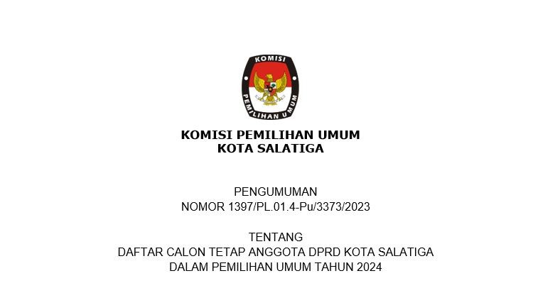 Pengumuman Daftar Calon Tetap (DCT) Anggota DPRD Kota Salatiga << KLIK DISINI >>