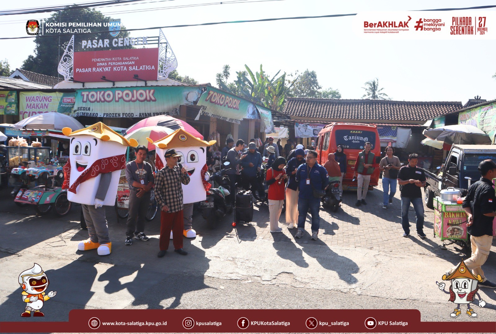 GUNA MENINGKATKAN PARTISIPASI MASYARAKAT, KPU KOTA SALATIGA SOSIALISASI DI PASAR CENGEK KOTA SALATIGA