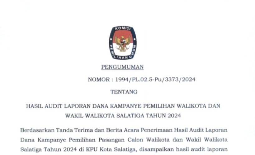 HASIL AUDIT LAPORAN DANA KAMPANYE PEMILIHAN WALIKOTA DAN WAKIL WALIKOTA SALATIGA TAHUN 2024