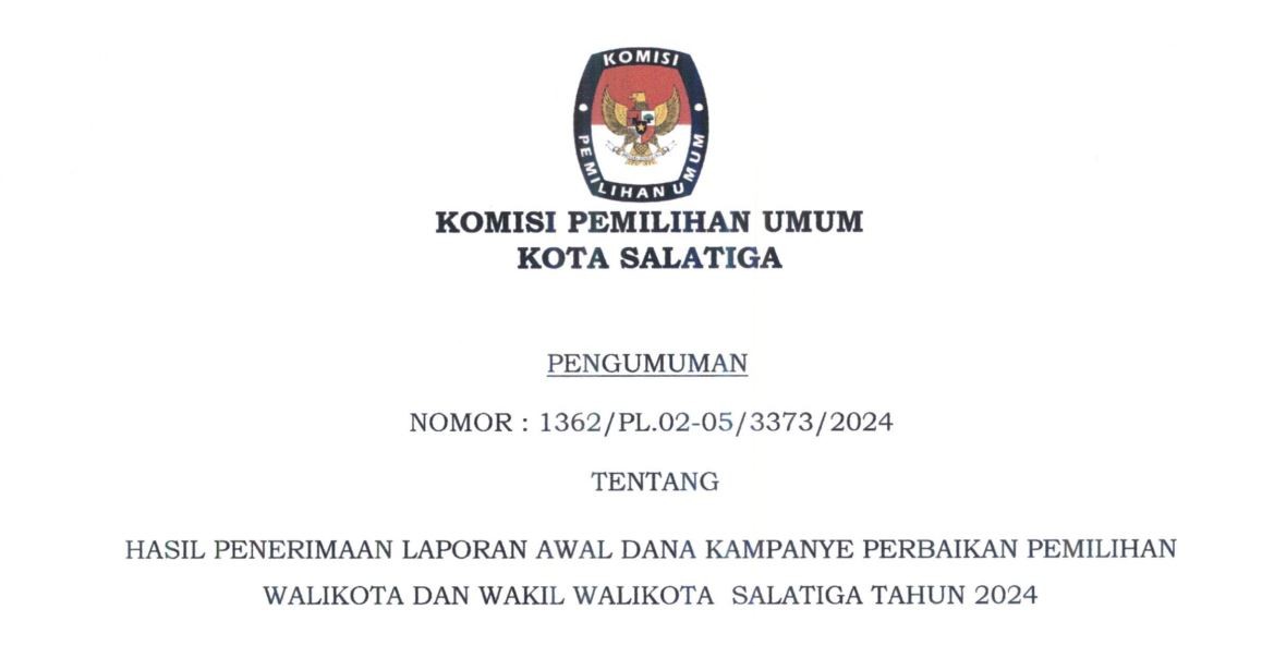 HASIL PENERIMAAN LAPORAN AWAL DANA KAMPANYE PERBAIKAN PEMILIHAN WALIKOTA DAN WAKIL WALIKOTA SALATIGA TAHUN 2024