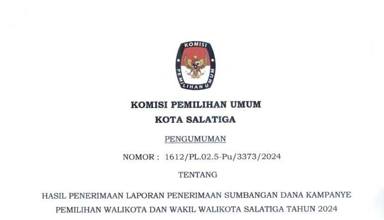 HASIL PENERIMAAN LAPORAN PENERIMAAN SUMBANGAN DANA KAMPANYE PEMILIHAN WALIKOTA DAN WAKIL WALIKOTA SALATIGA TAHUN 2024