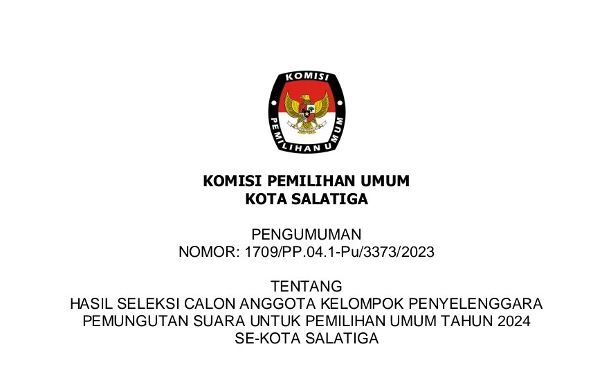 HASIL SELEKSI CALON ANGGOTA KELOMPOK PENYELENGGARA PEMUNGUTAN SUARA UNTUK PEMILIHAN UMUM TAHUN 2024 SE- KOTA SALATIGA