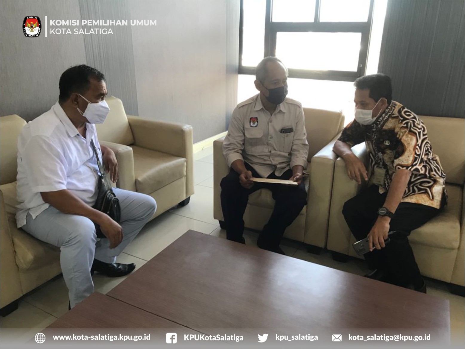 Ketua KPU Salatiga, Syaemuri bersama dengan Anggota KPU Salatiga Divisi Teknis Penyelenggaraan Pemilu, Dayusman Junus, bertemu dengan Asisten Pemerintahan dan Kesejahteraan Rakyat Sekretariat Daerah, Joko Wahono. Dalam pertemuan tersebut, KPU Kota Salatiga menyampaikan bahwa dalam rangka mempersiapkan penyelenggaraan Pemilu 2024, KPU Kota Salatiga meminta Pemerintah Kota Salatiga agar dapat menyampaikan perkembangan data wilayah administrasi pemerintahan Kota Salatiga kepada KPU Kota Salatiga. Perkembangan data wilyah ini akan dijadikan dasar dalam pelaksanaan penataan daerah pemilihan dan alokasi kursi pada Pemilu 2024. Sinergi dan hubungan yang baik antara KPU Kota Salatiga dan Pemerintah Kota Salatiga perlu terus dibangun, demi penyelenggaraan pemilu yang efektif.