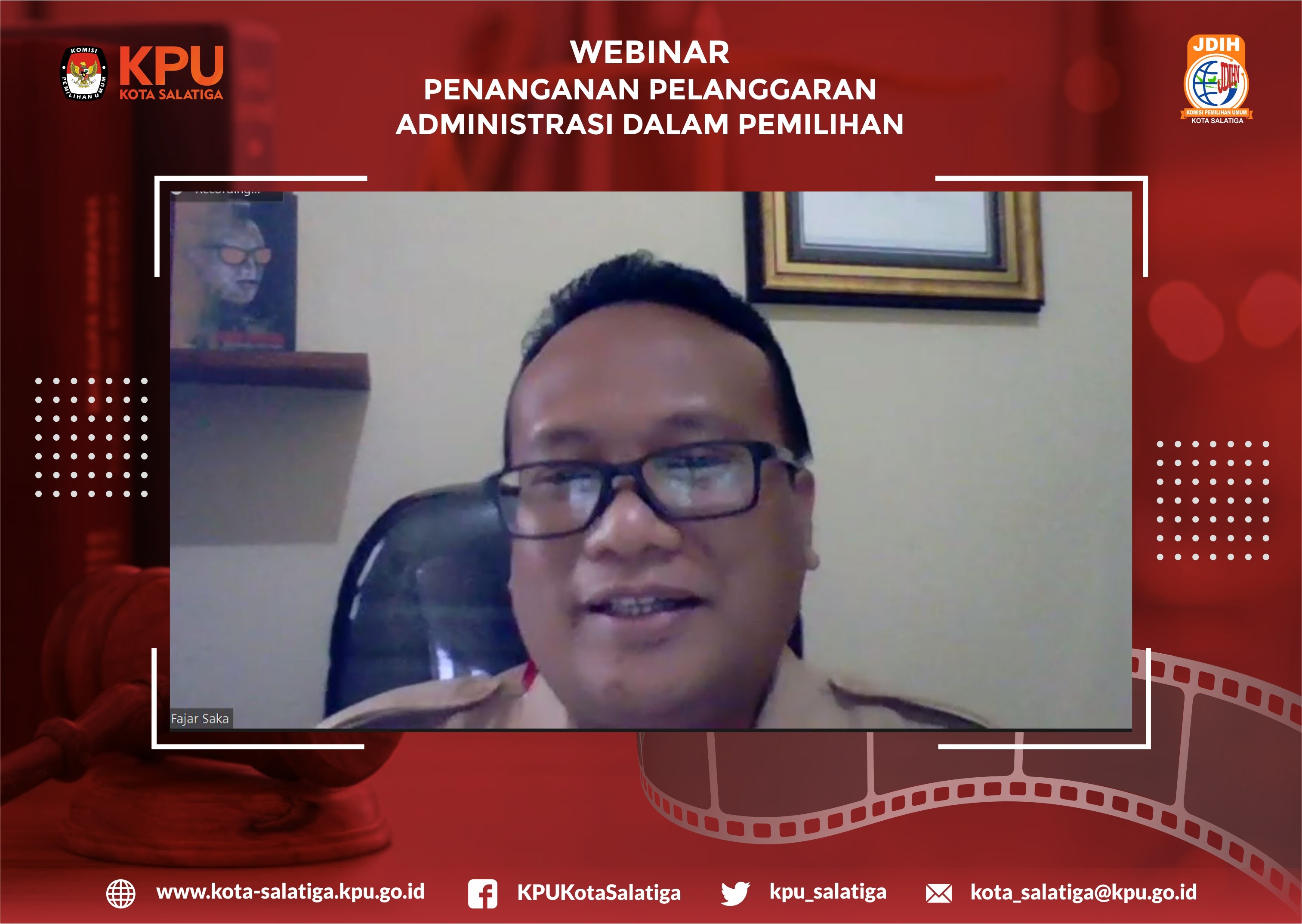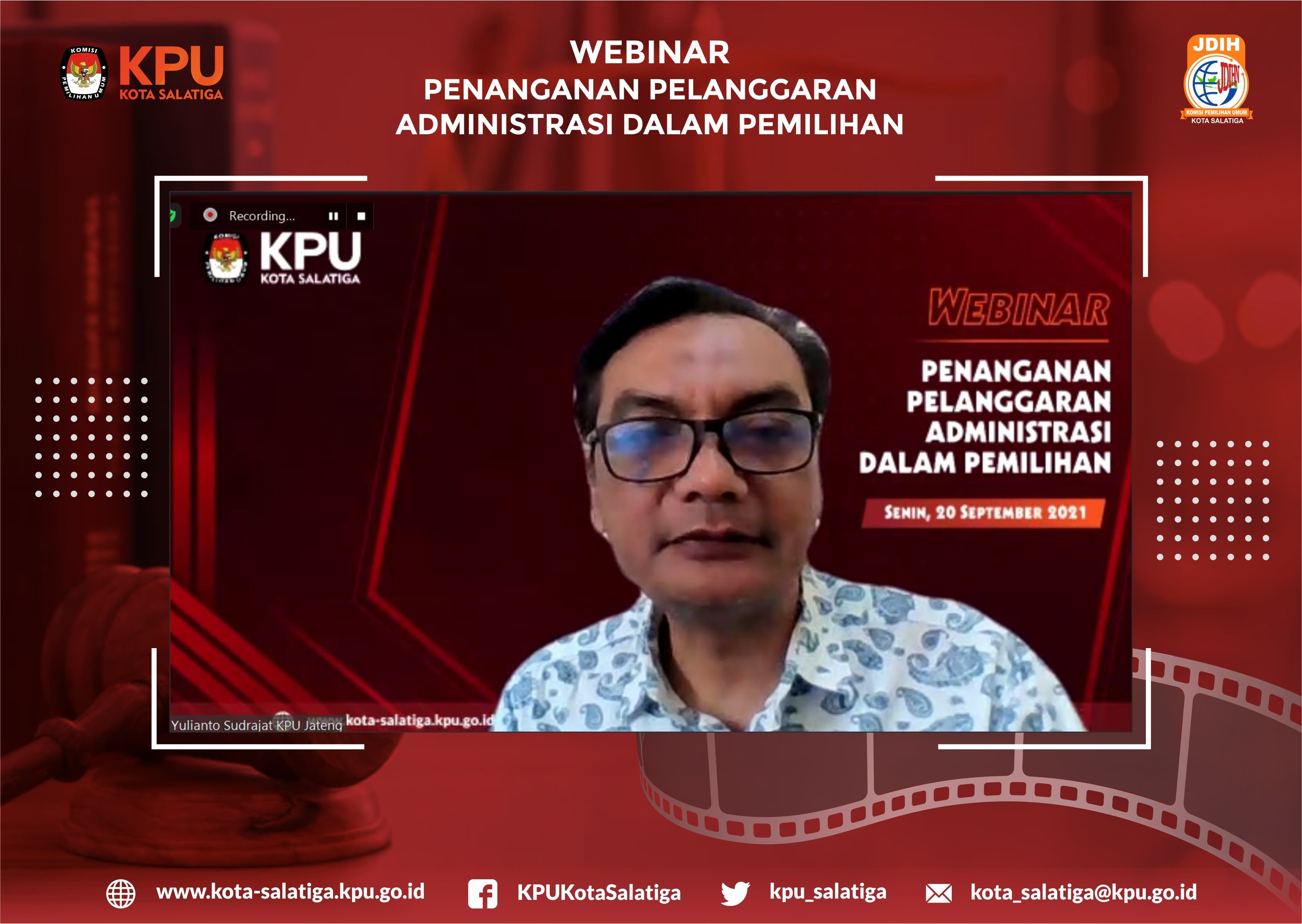 Acara dibuka oleh Ketua KPU Provinsi Jawa Tengah, Yulianto Sudrajat. Dalam sambutannya, Yulianto menyampaikan apresiasinya kepada KPU Kota Salatiga yang telah menyelenggarakan acara webinar. Dia memaparkan bahwa kegiatan ini berangkat dari kekhawatiran adanya beda pemahaman antara KPU dan Bawaslu terkait pelanggaran administrasi pemilu dan pemilihan.