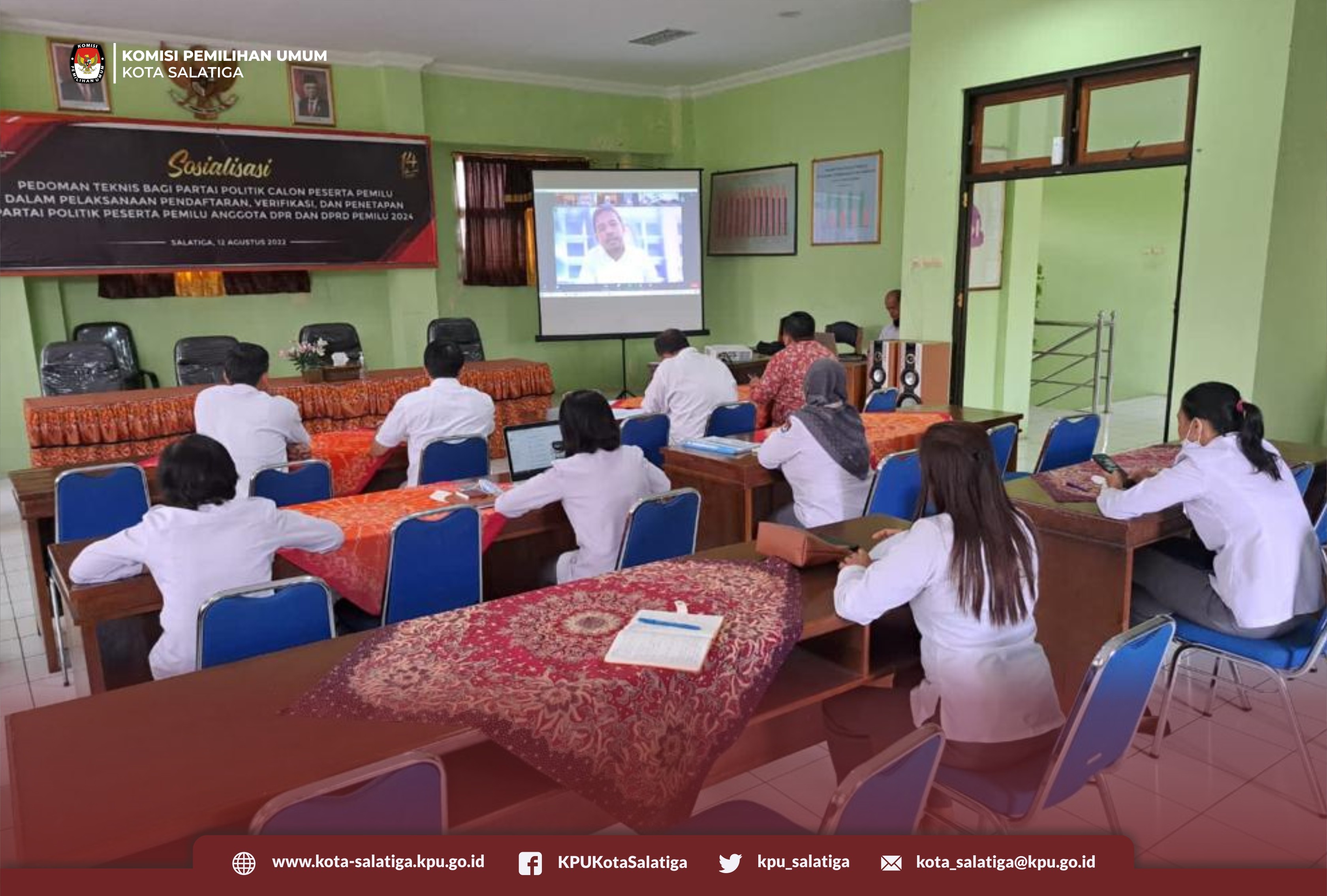 kota-salatiga.kpu.go.id- Pendaftaran peserta parpol telah ditutup pada tanggal 14 Agustus 2022 pukul 23.59 WIB. KPU kembali bergerak cepat dengan mempersiapkan tahapan verifikasi administrasi yang akan dilaksanakan oleh KPU Kabupaten/Kota dari tanggal 16 – 29 Agustus 2022. KPU Kota Salatiga mengikuti acara Rakor Verifikasi Administrasi Keanggotaan Partai Politik Calon Peserta Pemilu 2024 yang diadakan oleh KPU Provinsi Jawa Tengah melalui media daring zoom meeting, Senin (15/8/2022).