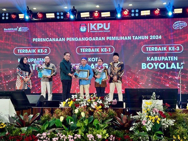 Pada kesempatan yang sama, KPU Kota Salatiga menerima dua penghargaan sekaligus dari KPU Provinsi Jawa Tengah dalam ajang Luwih Becik Luwih Nyenengke Award. KPU Kota Salatiga meraih Terbaik 1 untuk Kategori Seleksi Badan AdHoc Pilkada Serentak 2024, serta Terbaik 1 untuk Kategori Perencanaan Penganggaran Pilkada Serentak 2024.