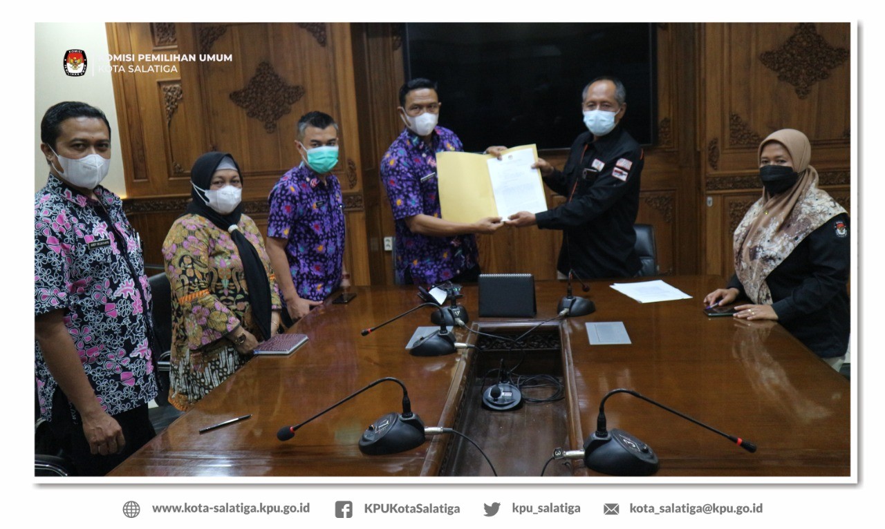 kota-salatiga.kpu.go.id-- Ketua KPU Kota Salatiga Syaemuri menyerahkan surat Nomor 685/Py.03.1/3373/2021 kepada Ketua DPRD Kota Salatiga. Surat terkait Penggatian Antar Waktu (PAW) anggota DPRD Kota Salatiga dari PDI-P, Milhous Teddy Sulistio, SE. Surat beserta lampirannya diterima langsung oleh Sekretaris Dewan Agung Nugroho di ruang Rapat Sekretariat Dewan, Rabu (15/12).