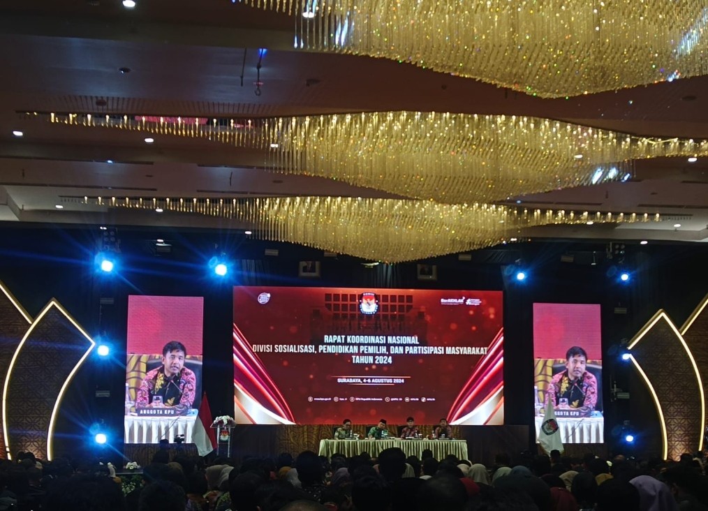 kota-salatiga.kpu.go.id - Minggu (04/08), Divisi Sosdiklih & Parmas KPU Kota Salatiga menghadiri Pembukaan Rapat Kerja Divisi Sosialisasi Pendidikan Pemilih dan Parmas Tahun 2024 di Kota Surabaya, Jawa Timur. Rapat tersebut dilaksanakan pada tanggal 04 - 06 Agustus yang dihadiri oleh KPU RI, KPU Provinsi, KPU Kab/Kota Divisi Sosdiklih Parmas, dan Kabag dan operator Siparmas serta Kasubbag Parmas se-Indonesia.