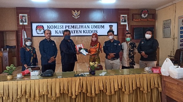 Di akhir acara, KPU Kabupaten Kudus menyerahkan cinderamata berupa tiga buah buku dokumentasi Pemilihan Umum 2019 lalu.