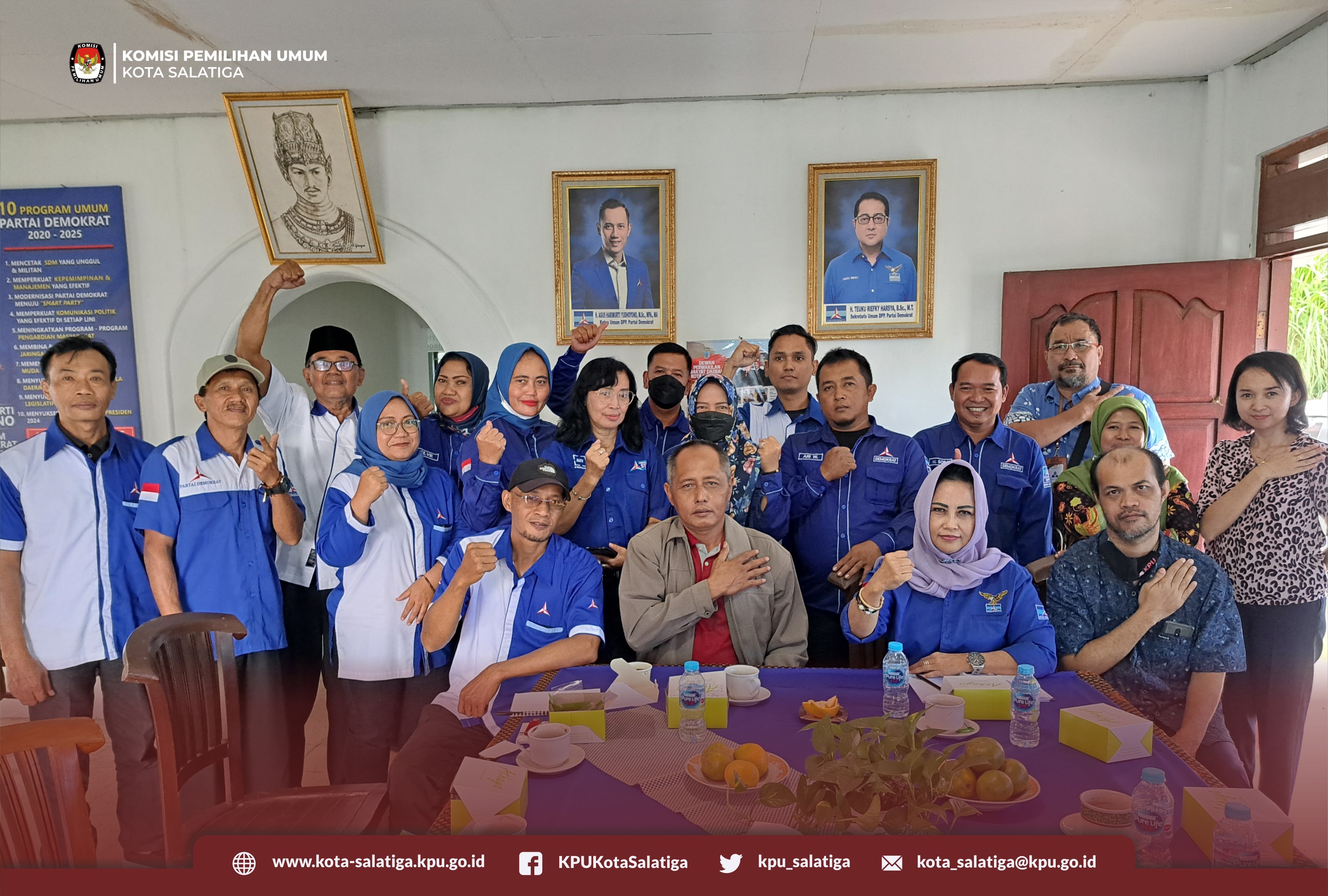 kota-salatiga.kpu.go.id - Kunjungan KPU Kota Salatiga ke Partai Politik di Kota Salatiga hari kedelapan, Jumat (8/7), adalah ke Partai Demokrat. Kunjungan ini menjadi penutup dari serangkaian kunjungan KPU Kota Salatiga ke Partai Politik yang ada di Kota Salatiga dalam rangka silaturahmi dan sosialisasi.