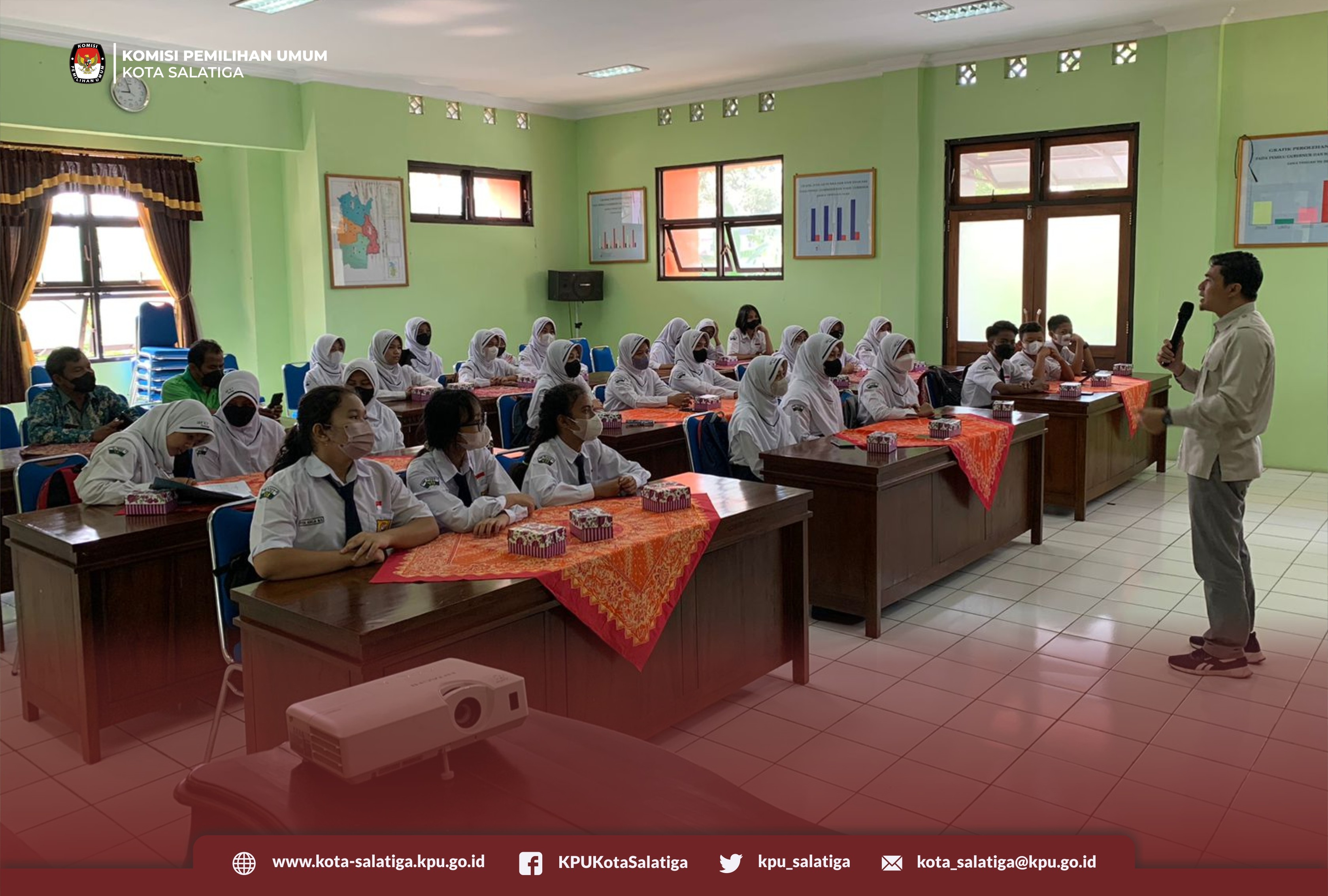 kota-salatiga.kpu.go.id. KPU Kota Salatiga kembali menerima tamu dari Sekolah Menengah Pertama (SMP). Kesempatan kali ini siswa-siwi SMP N 9 Salatiga yang ingin menambah ilmu sekaligus memantapkan panitia pemilihan Ketua OSIS. Bertempat di aula KPU Salatiga, sebanyak 35 orang siswa dan guru sudah siap mendapatkan ilmu baru dari Abd. Rochim selaku divisi sosialisasi KPU Salatiga, Selasa (13/09).