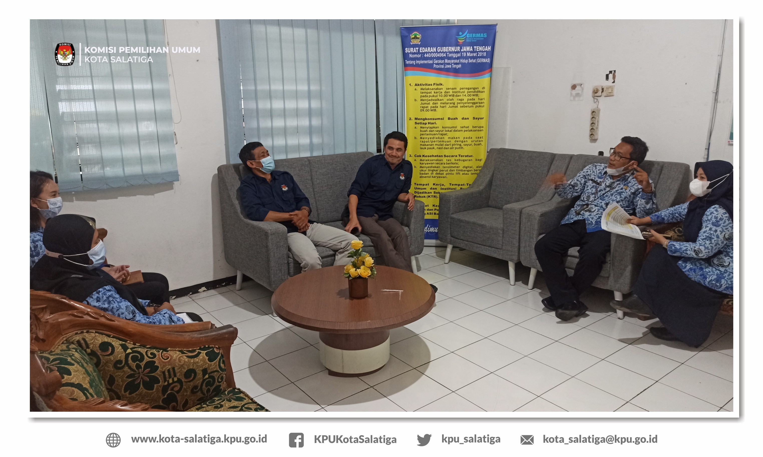 Ditemui oleh Jadi Amali (Kepala Bidang Aplikasi Informatika), Dian dan Elly (keduanya adalah sub koordinator pada Bidang Informasi Komunikasi Publik), KPU Kota Salatiga mengharapkan dukungan Diskominfo dalam sosialisasi Pemilu 2024. Rencana sosialisasi yang diharapkan mendapat dukungan dari Diskominfo adalah sosialisasi melalui radio, videotron, maupun akun media sosial pemerintah setempat.