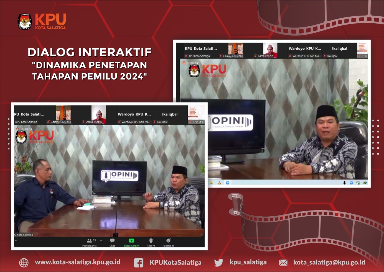 Bertempat di studio podcast, KPU Kota Salatiga mengadakan dialog interaktif bertajuk “Dinamika Penetapan Tahapan Pemilu 2024” pada Jumat (01/10/2021). Hadir sebagai narasumber adalah Luqman Hakim (Wakil Ketua Komisi II DPR RI), dengan moderator Syaemuri (Ketua KPU Kota Salatiga). Peserta dialog adalah KPU Kabupaten/Kota se-Jawa Tengah.