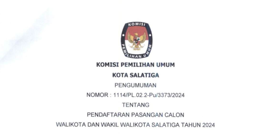 Bahwa untuk melaksanakan ketentuan Pasal 95 Peraturan Komisi Pemilihan Umum Nomor 8 Tahun 2024 tentang Pencalonan Walikota dan Wakil Walikota, Bupati dan Wakil Bupati, serta Walikota dan Wakil Walikota, Komisi Pemilihan Umum Kota Salatiga mengumumkan Pendaftaran Walikota dan Wakil Walikota Salatiga Tahun 2024 sebagai berikut