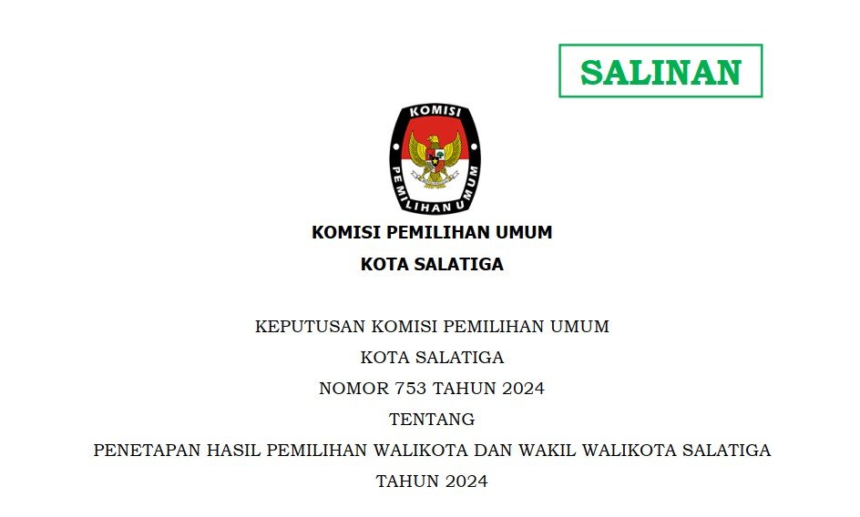 PENETAPAN HASIL PEMILIHAN WALIKOTA DAN WAKIL WALIKOTA SALATIGA TAHUN 2024