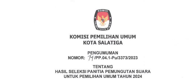 Berdasarkan Berita Acara Rapat Pleno KPU Kota Salatiga Nomor 17/PP.04.1-BA/3373/2023 tanggal 20 Januari 2023 tentang Penetapan Hasil Seleksi Calon Anggota Panitia Pemungutan Suara (PPS) pada Pemilihan Umum Tahun 2024, dengan ini disampaikan hal-hal sebagai berikut: