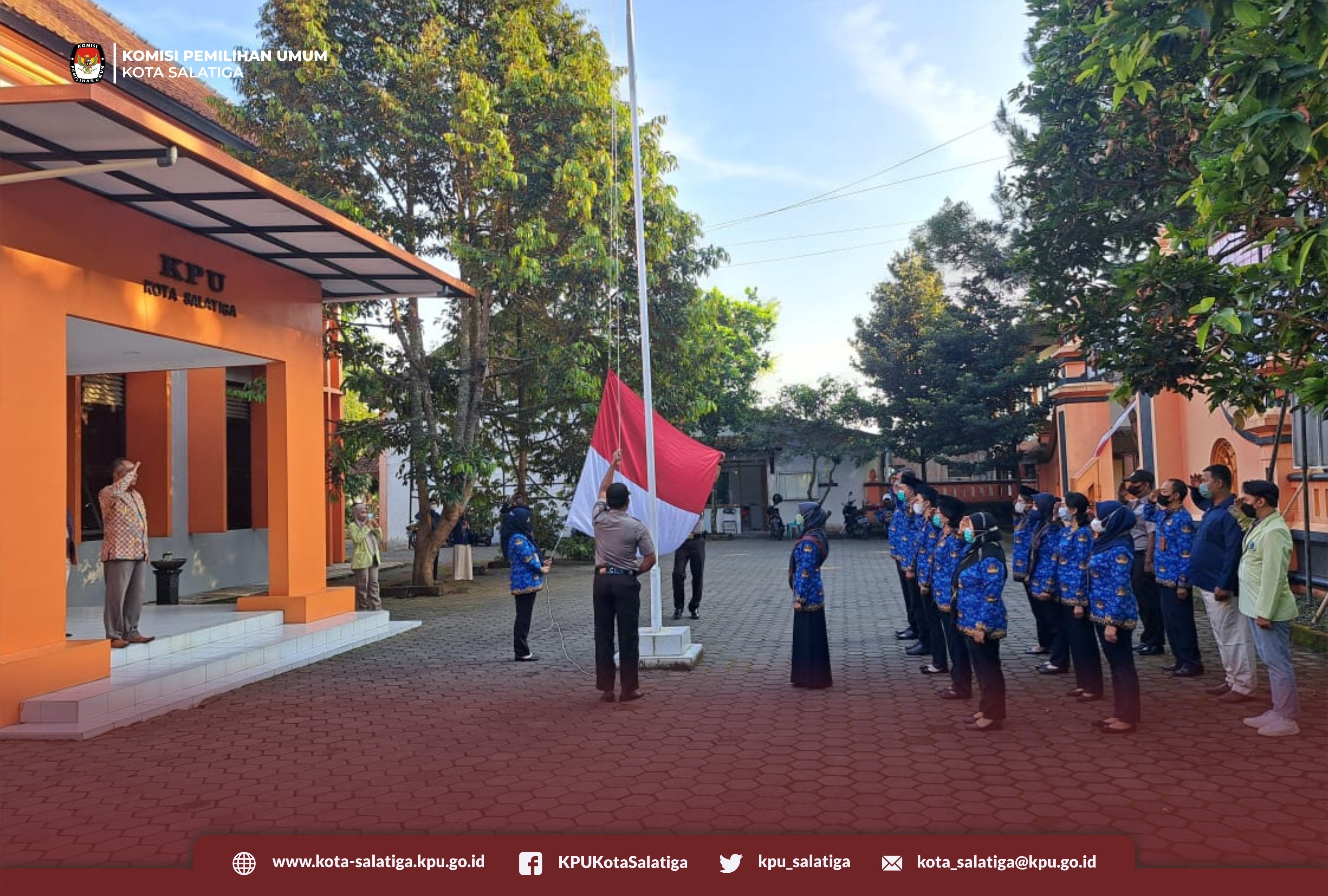Ketua KPU Kota Salatiga Syaemuri didapuk sebagai pembina upacara, yang diikuti oleh semua pejabat dan staf dilingkungan satuan kerja. Dilaksanakan tepat jam 07.00 WIB dihalaman kantor KPU Kota Salatiga, Rabu (17/8).