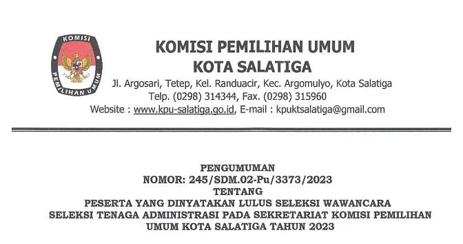 PESERTA YANG DINYATAKAN LULUS SELEKSI WAWANCARA SELEKSI TENAGA ADMINISTRASI PADA SEKRETARIAT KOMISI PEMILIHAN UMUM KOTA SALATIGA TAHUN 2023
