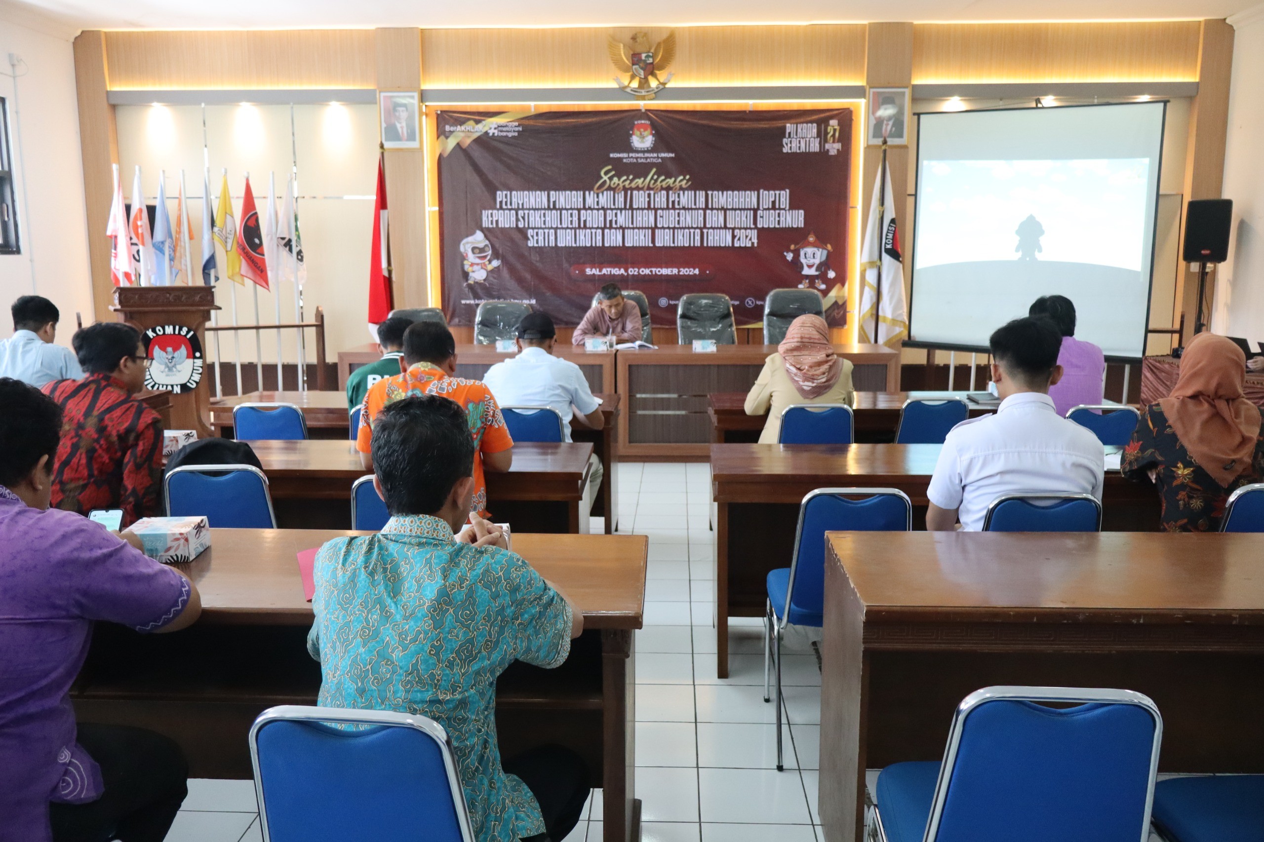 kota-salatiga.kpu.go.id - Setelah ditetapkannya nomor urut pasangan calon Walikota dan Wakil Walikota Salatiga Tahun 2024 melalui rapat pleno terbuka pada 23 September 2024, KPU Kota Salatiga membuka layanan Pindah Memilih. KPU Kota Salatiga mengundang stakeholder terkait, perusahaan, rumah sakit dan universitas di lingkungan Kota Salatiga untuk melakukan sosialisasi pindah memilih di Aula KPU Kota Salatiga pada Rabu(02/10).
