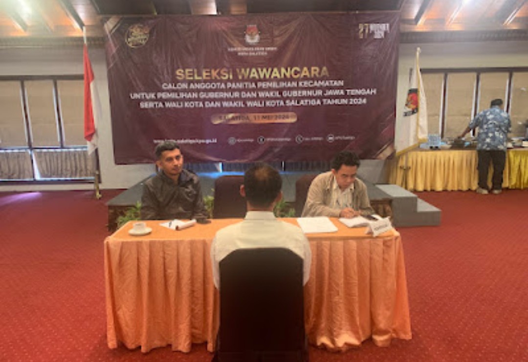 Kota-salatiga.kpu.go.id - KPU Kota Salatiga menggelar tes wawancara bagi calon anggota Panitia Pemilihan Kecamatan (PPK) Kota Salatiga untuk Pemilihan Gubernur dan Wakil Gubernur serta Pemilihan Wali Kota dan Wakil Wali Kota Tahun 2024, Sabtu (11/5) di Merapi Room Hotel Laras Asri Salatiga.