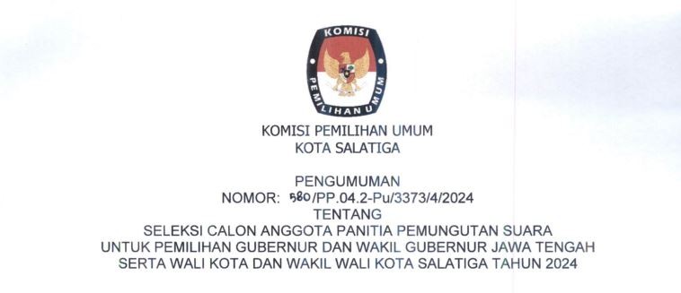 SELEKSI CALON ANGGOTA PANITIA PEMUNGUTAN SUARA UNTUK PEMILIHAN GUBERNUR DAN WAKIL GUBERNUR JAWA TENGAH SERTA WALI KOTA DAN WAKIL WALI KOTA SALATIGA TAHUN 2024