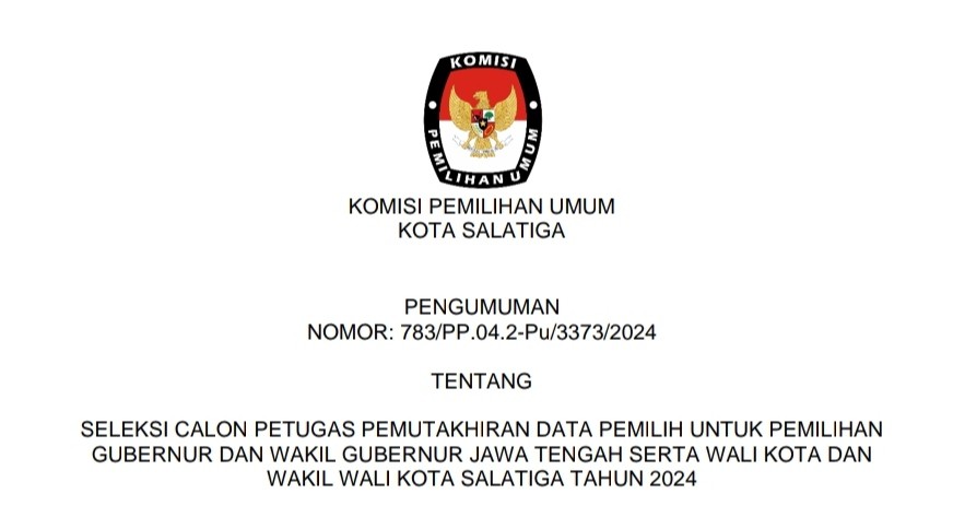 SELEKSI CALON PETUGAS PEMUTAKHIRAN DATA PEMILIH UNTUK PEMILIHAN GUBERNUR DAN WAKIL GUBERNUR JAWA TENGAH SERTA WALI KOTA DAN WAKIL WALI KOTA SALATIGA TAHUN 2024