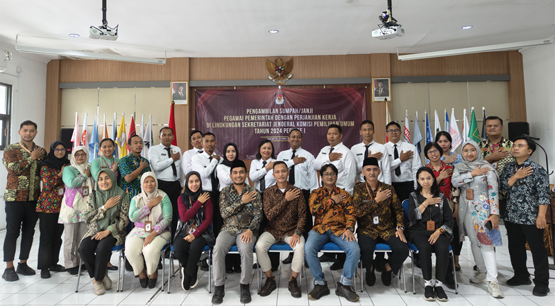 Sekretaris Jenderal KPU, Bernad Dermawan Sutrisno kemudian mengambil sumpah/janji sebanyak 3.486 orang pada Calon PPPK siang hari secara daring dan luring. Jajaran Komisioner dan Sekretariat KPU Kota Salatiga turut hadir dan menyaksikan acara pengambilan sumpah/janji tersebut di Aula Kantor KPU Kota Salatiga. Sekretaris dan Kepala Subbagian Hukum dan SDM KPU Kota Salatiga juga ikut menjadi saksi dalam prosesi penandatanganan berita acara pengambilan sumpah/janji.