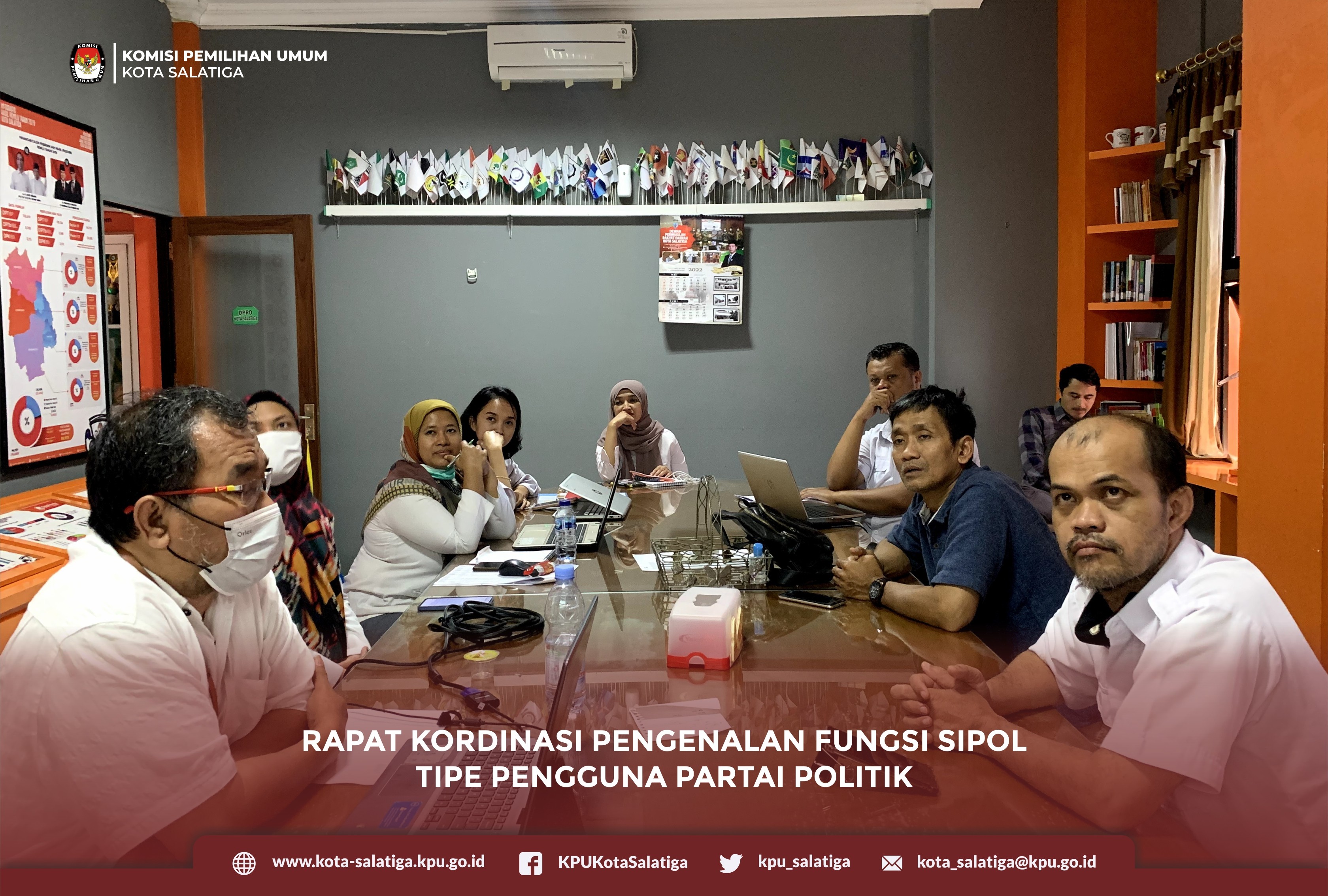 kota-salatiga.kpu.go.id Bertempat di Ruang RPP, KPU Kota Salatiga yang terdiri dari jaajaran komisioner dan sekretariat, mengikuti kegiatan Rapat Koordinasi Pengenalan Fungsi SIPOL Tipe Pengguna Partai Politik, secara daring, Kamis (7/7). Kegiatan diselenggarakan oleh KPU Provinsi Jawa Tengah dalam rangka mempersiapkan tahapan Pendaftaran dan Verifikasi Partai Politik peserta Pemilu 2024. Rapat Koordinasi dibuka oleh Ketua KPU Provinsi Jawa Tengah Paulus Widiantoro.